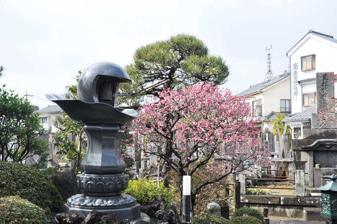 足立区登録有形文化財の後深草法皇の木像、五代将軍綱吉の生母桂昌院の墓があります。